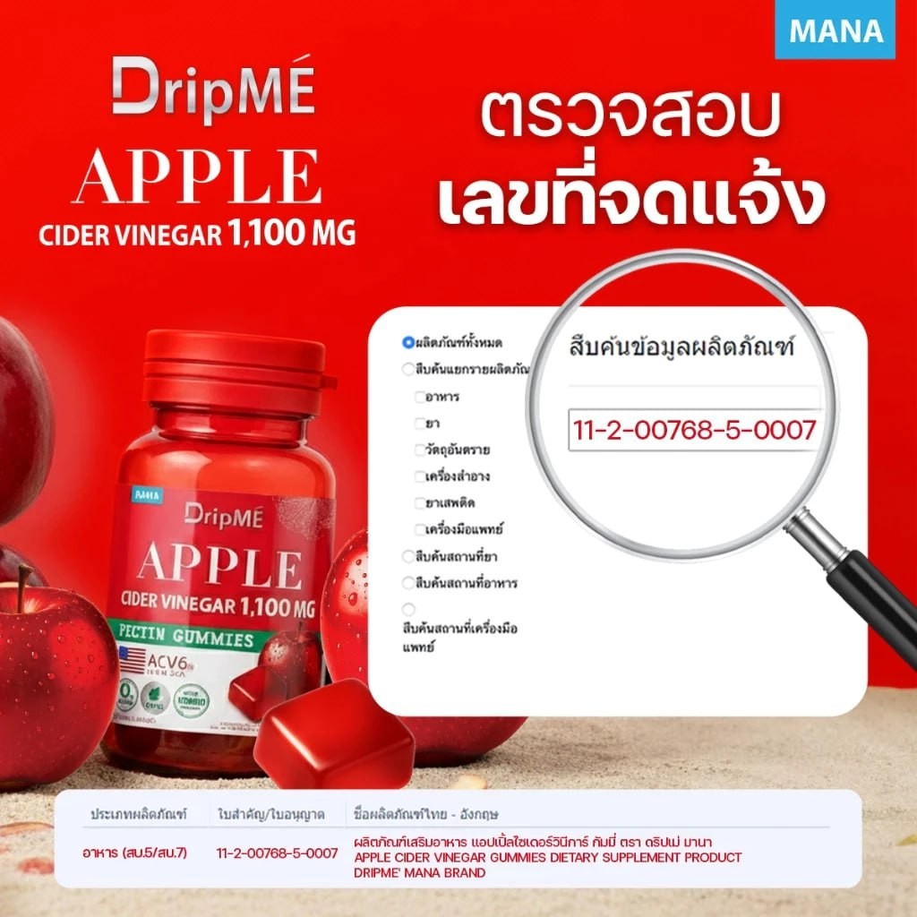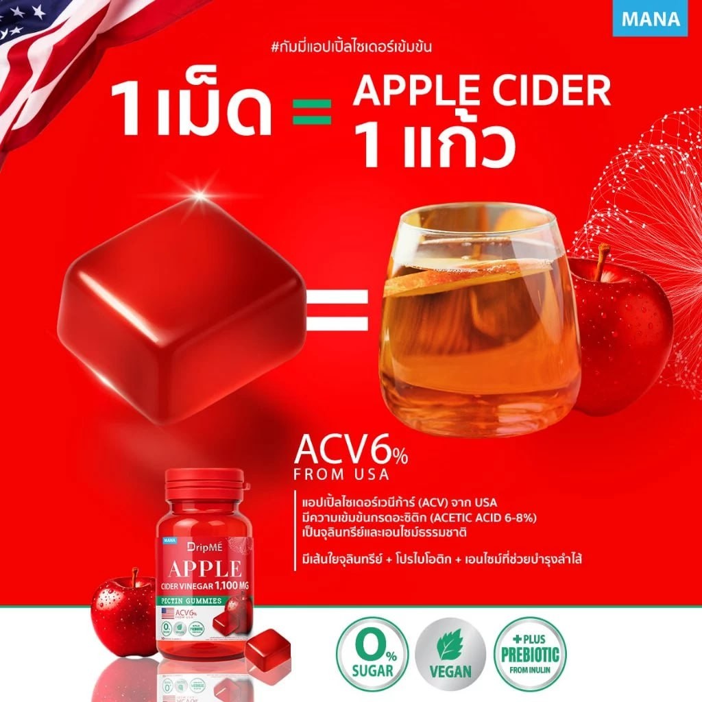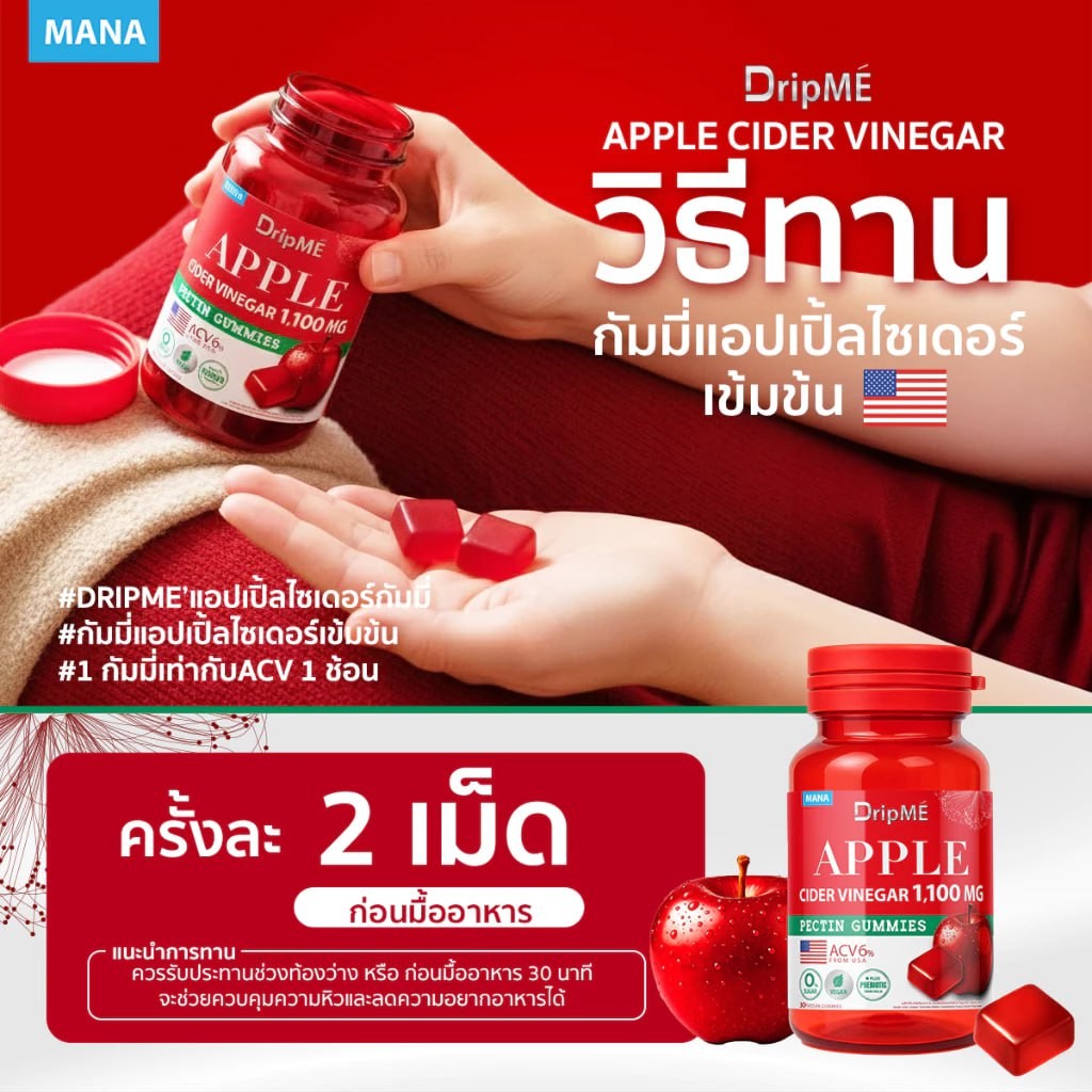 MANA DripME" Apple cider vinegar Gummies มานา ดริปเม่ แอปเปิ้ลไซเดอร์ กัมมี่