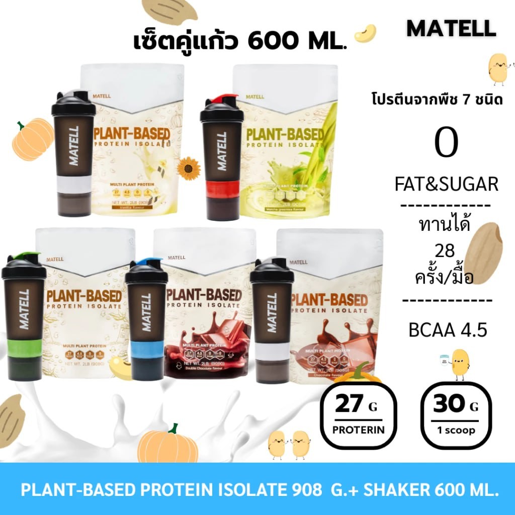 MATELL Plant-Based Protein Isolate แพลนต์เบสด์ ไอโซเลท โปรตีนพืช แก้วเชค สุ่มสี Shaker 600 ml.