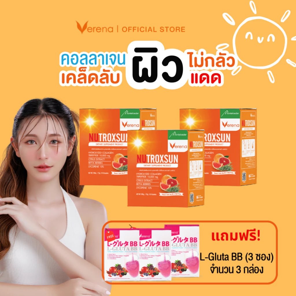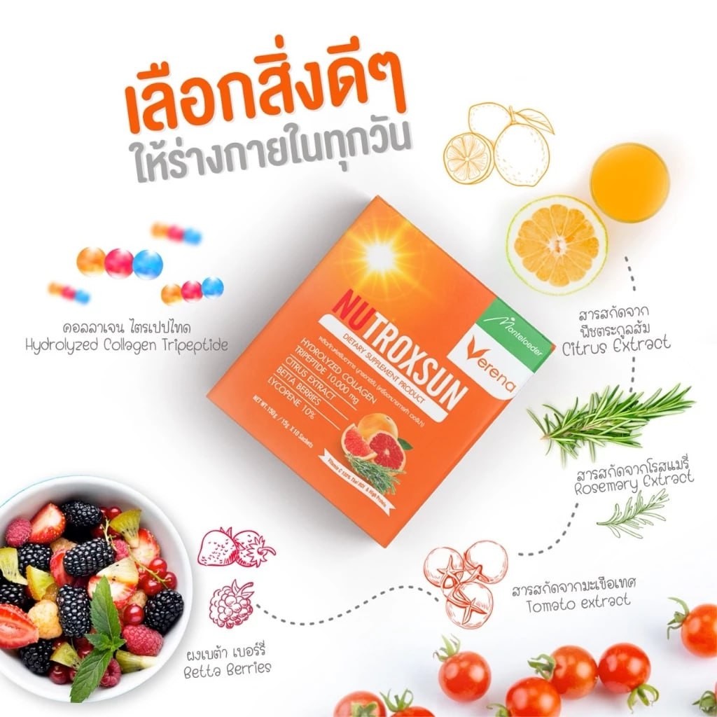 คอลลาเจนไตรเปปไทด์ + Nutroxsun สารสกัดจากสเปน ช่วยปกป้องผิวจากแสงแดด ลดหมองคล้ำ ผิวอิ่มฟู กระจ่างใส ไม่ต้องพึ่งฟิลเตอร์