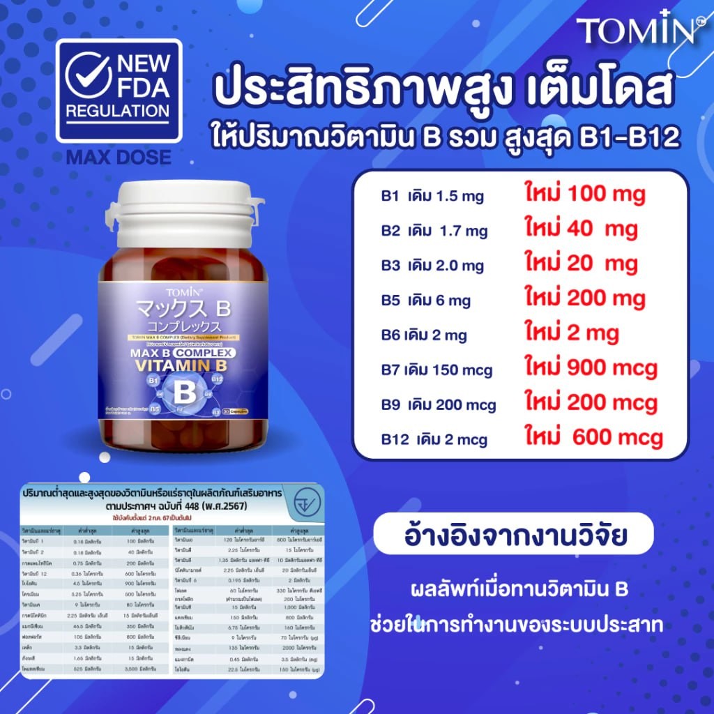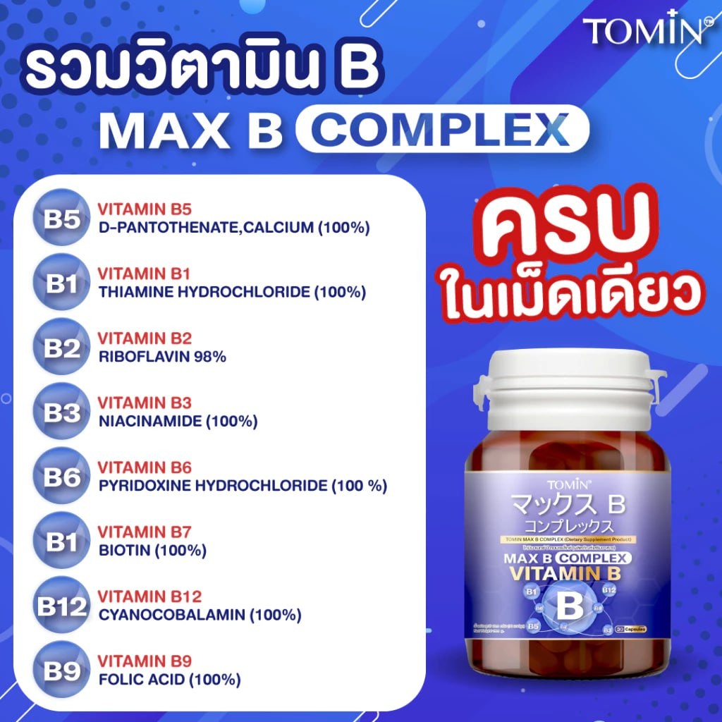 Tomin™️ Max B Complex Vitamin B วิตามินบีรวม คอมเพล็กช์ บำรุงร่างกาย ลดเพลีย คลายเครียด