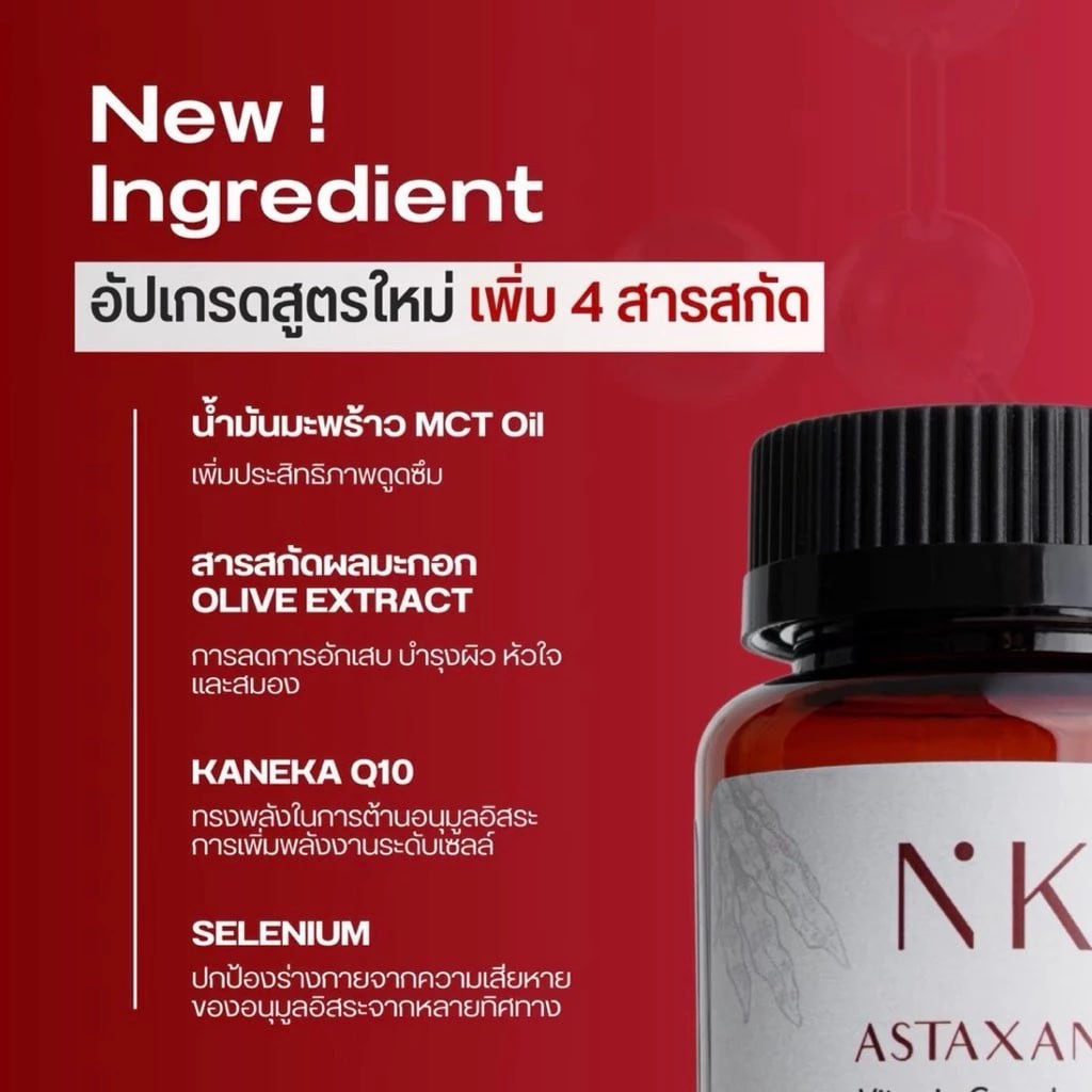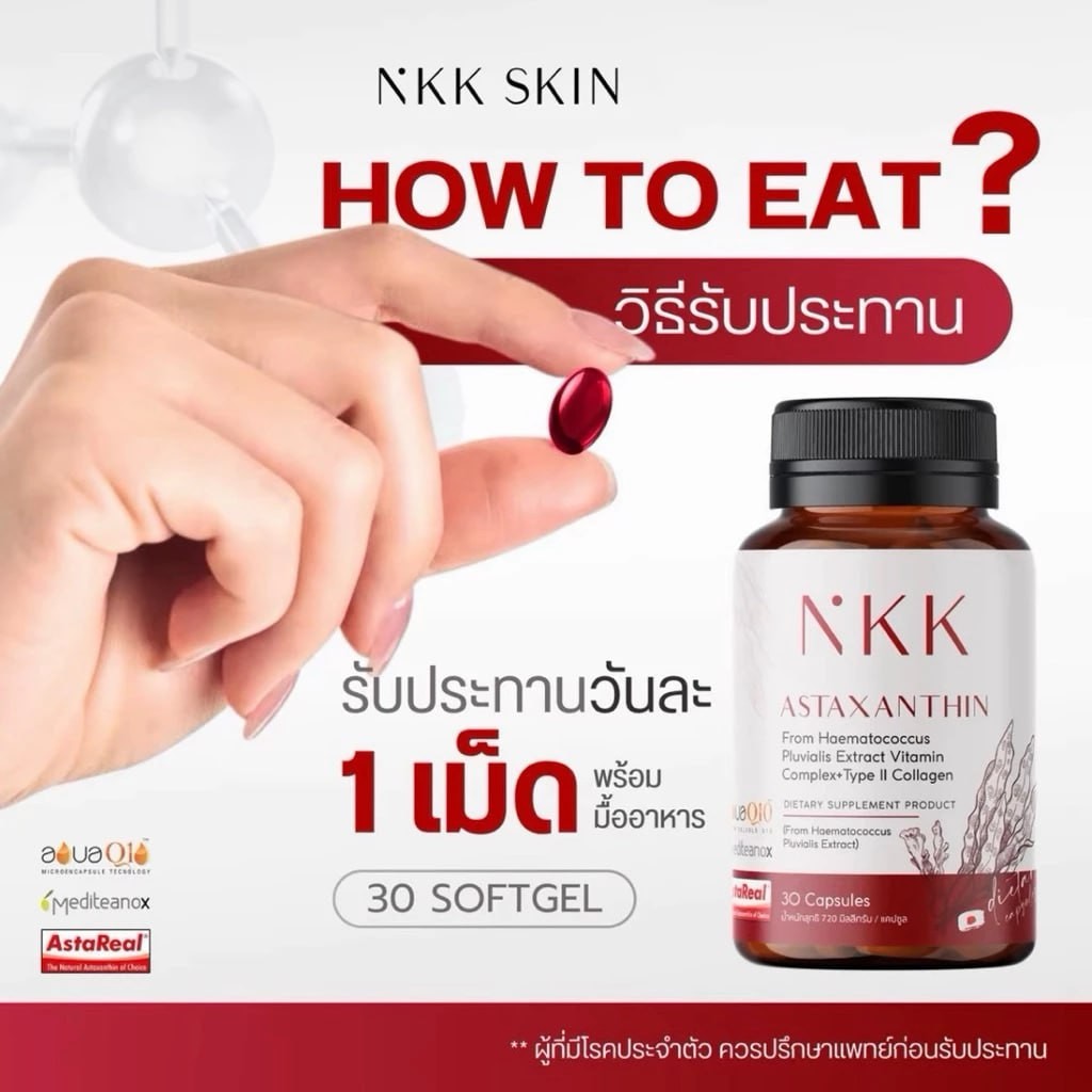 NKK แอสตาแซนธิน วิตามิน คอมแพล็กซ์+คลอลาเจนไทพ์ทู ผลิตภัณฑ์เสริมอาหาร NKK แอสแซนธิน (30 ซอฟต์เจล/กล่อง)