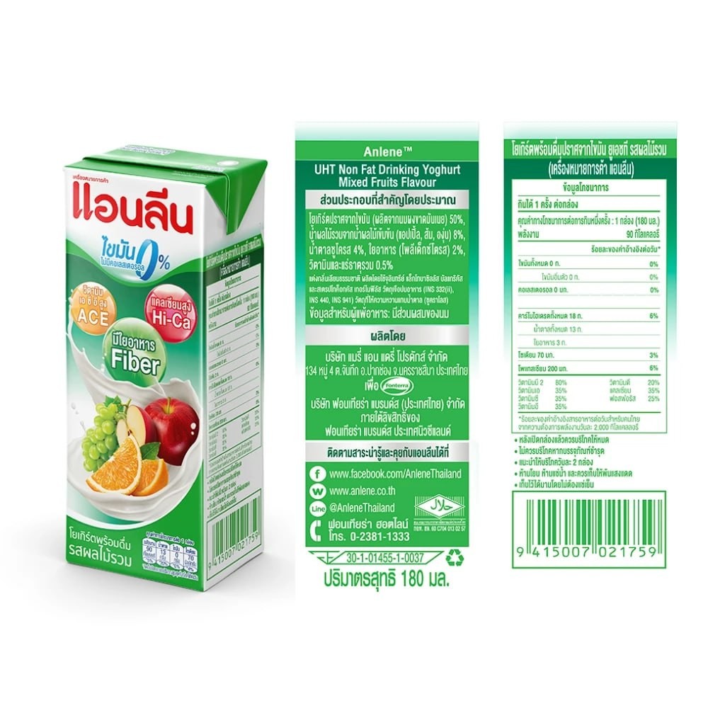 (2 ลัง) Anlene แอนลีน โบนซ์แอคทีฟ นมโยเกิร์ตพร้อมดื่ม รสผลไม้รวม ยกลัง 12x4x180 มล. (96 กล่อง)