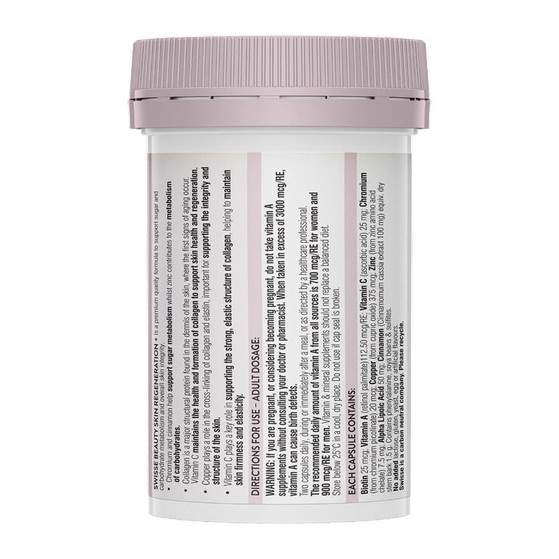 ไบโอติน 25 ไมโครกรัม; วิตามินเอ (เรตินอล พัลมิเทต) 112.50 mcg/RE; วิตามินซี (กรดแอสคอร์บิก) 25 มก.; โครเมียม (จากโครเมียมพิโคลิเนต) 20 ไมโครกรัม; ทองแดง (จากคิวริกออกไซด์) 375 ไมโครกรัม; สังกะสี (จากซิงค์ อะมิโน แอซิด คีเลต) 7.5 มก.; กรดอัลฟาไลโปอิก 50 มก.; อบเชย (Cinnamomum cassia extract 100 mg) เทียบเท่า เปลือกลำต้นแห้ง 1.5 กรัม