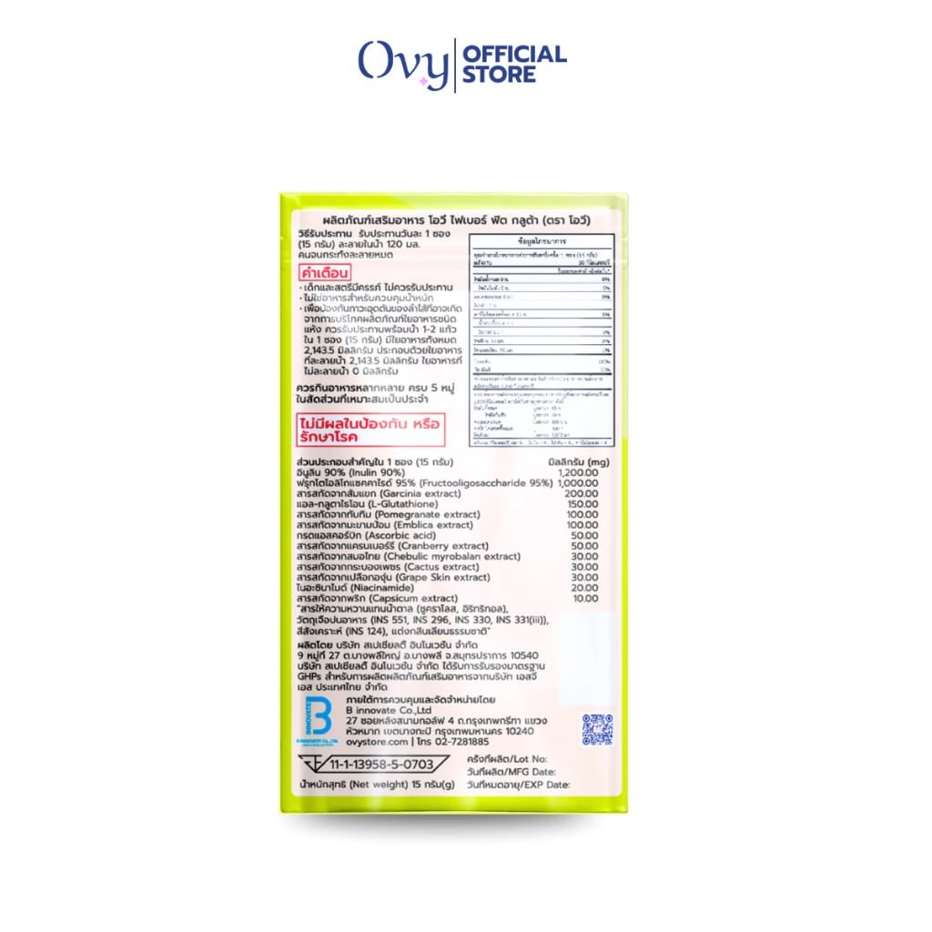 Ovy ผลิตภัณฑ์เสริมอาหาร โอวี่ ไฟเบอร์ ฟิต กลูต้า (ตรา โอวี่)