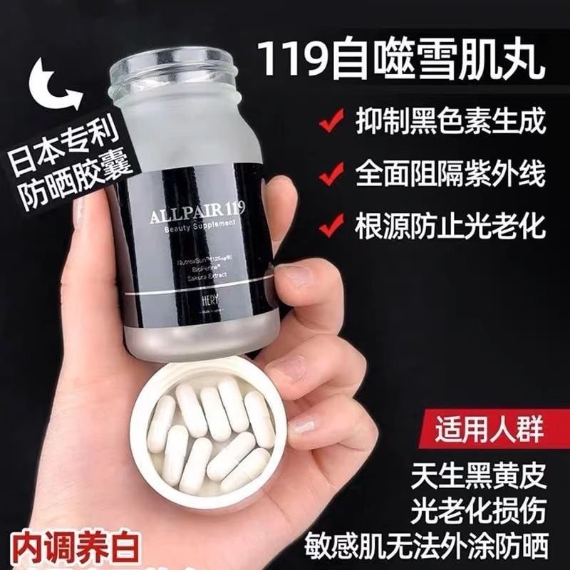 ชื่อผลิตภัณฑ์: ALLPAIR Whitening, Brightening, Repairing, Dullness, Lightening Color Spots, Sunscreen, Snow Muscle Pills 90 Capsules