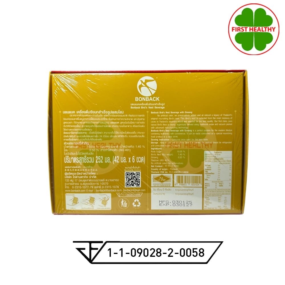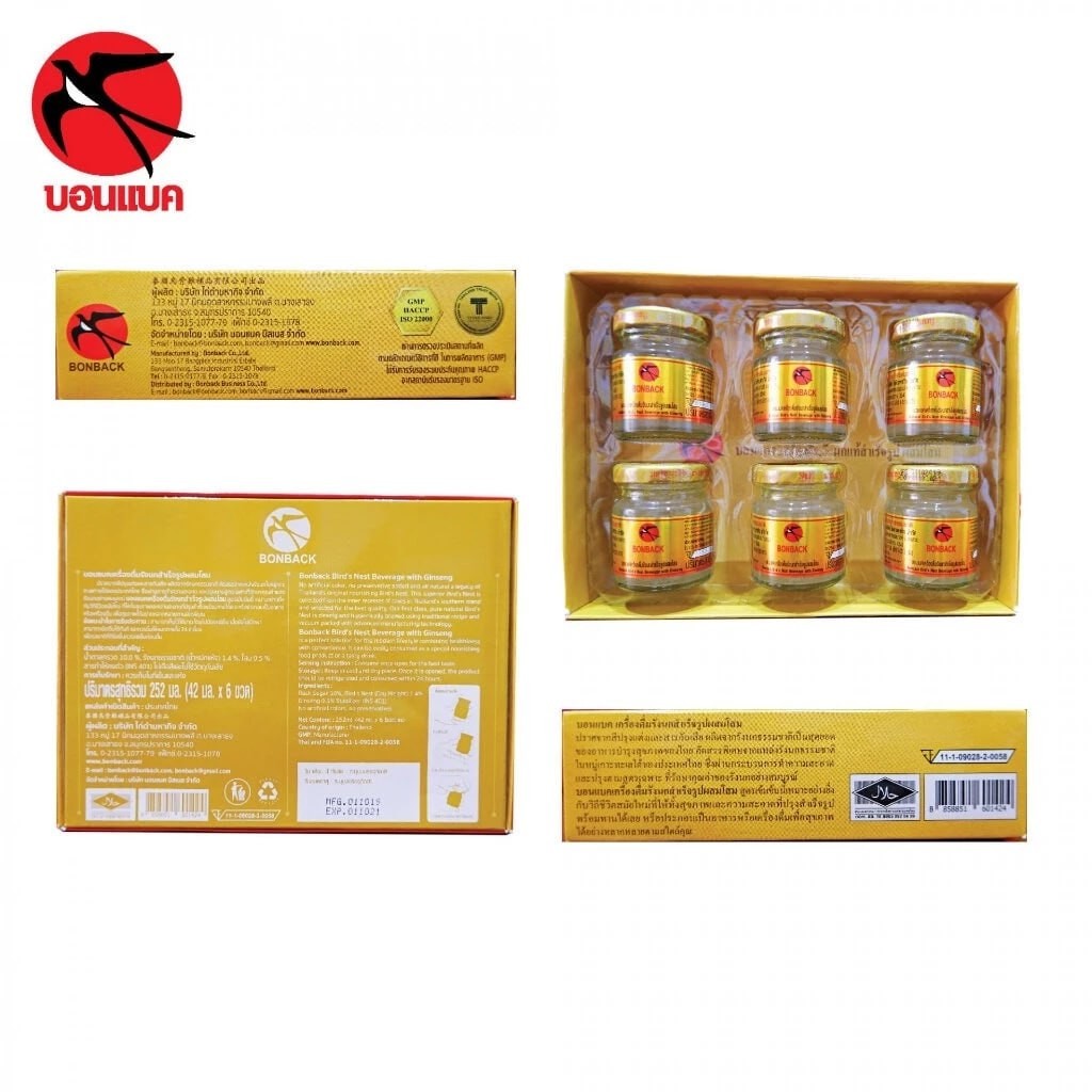 BONBACK รังนกบอนแบค ( PACK 5 " กล่องเหลือง " ) เครื่องดื่มรังนกสำเร็จรูป สูตร ผสมโสม 42 มล.