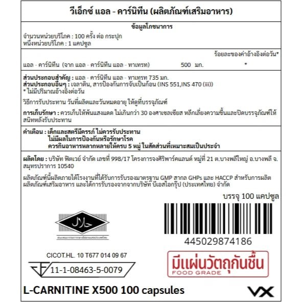 ✓ L-carnitine อัดแน่น 500 mg. ต่อเม็ด