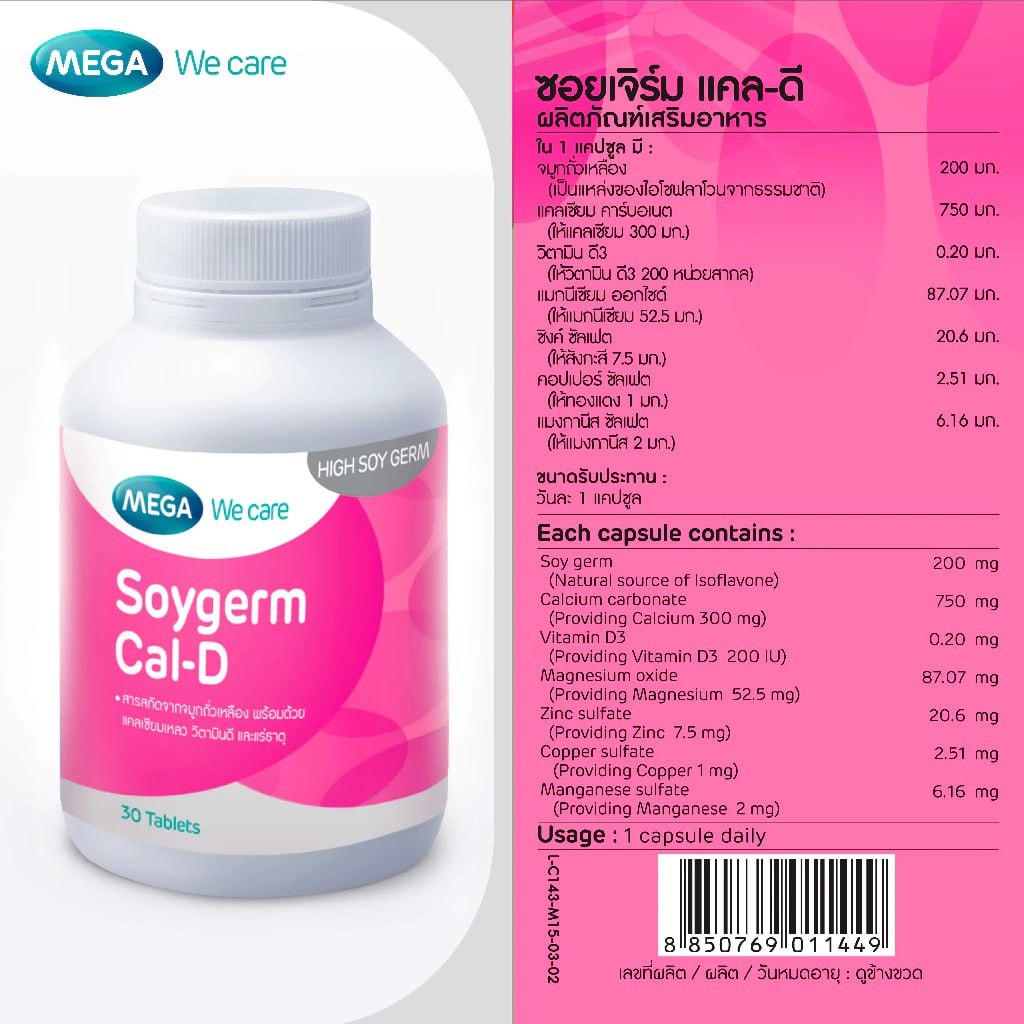 จมูกถั่วแหลือง 200 มก.   (เป็นแหล่งของไอโซฟลาโวนจากธรรมชาติ)