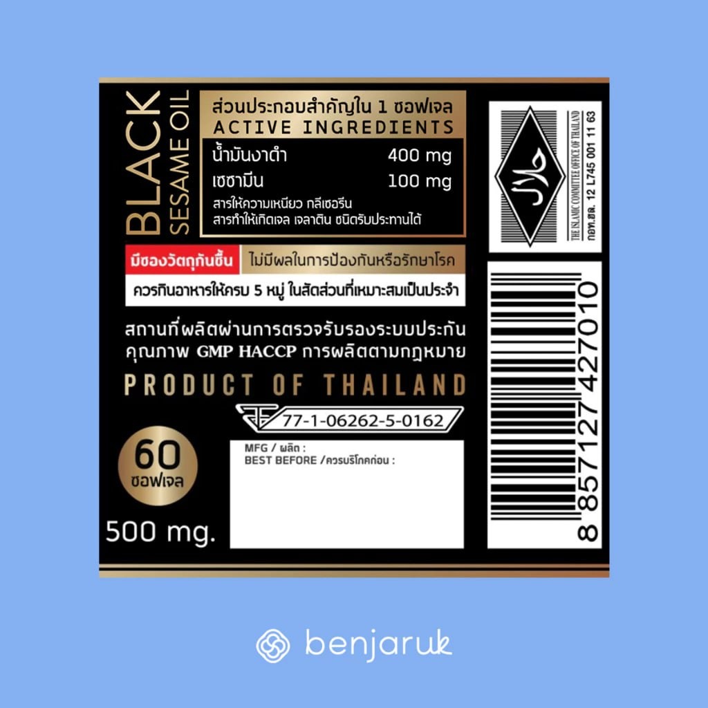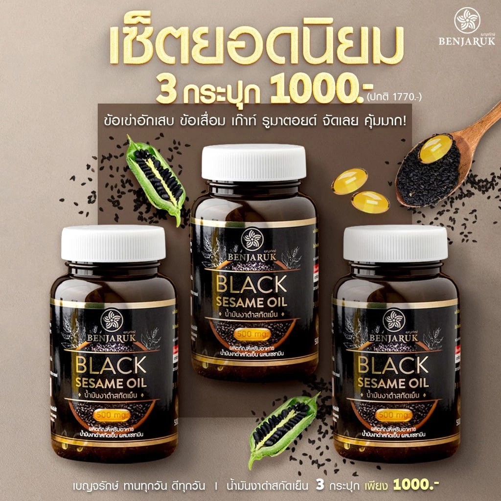 น้ำมันงาดำสกัดเย็น ผสมสารสกัดเซซามิน ตราเบญจรักษ์