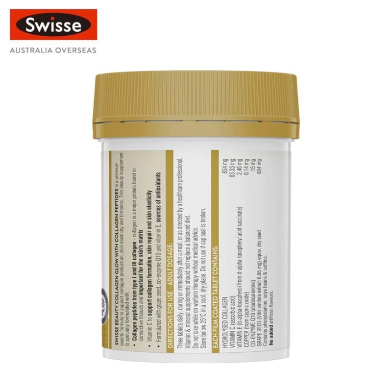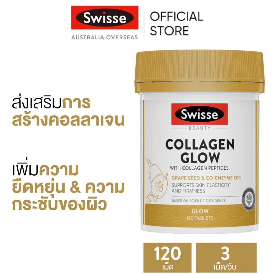 Swisse Beauty Collagen Glow with Collagen Peptides คอลลาเจนเพิ่มความงาม สารสกัดคอลลาเจน 120 เม็ด