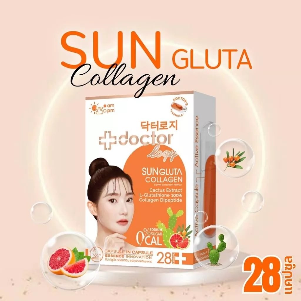 Doctorlogy ซัน กลูต้า คอลลาเจน (28 แคปซูล) ดอกเตอร์ โลจิ วิตามินกันแดด-วิตามินผิวขาว สูตรแพทย์ แคปซูล 2 ชั้นทำงานนานต่อ