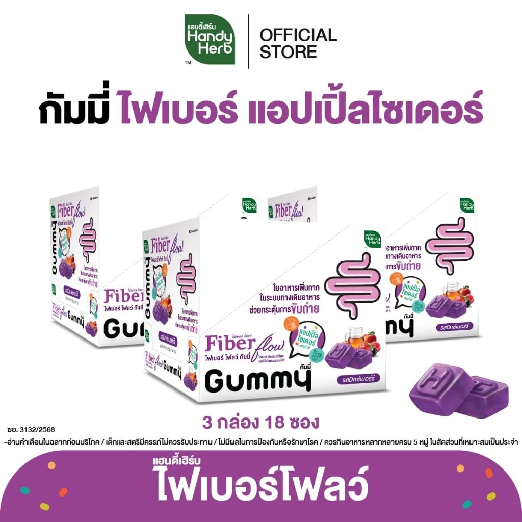 HandyHerb Fiber Flow Gummy ไฟเบอร์ มิกซ์เบอร์รี เเละแอปเปิ้ลไซเดอร์ เวเนก้าร์ รสมิกซ์เบอร์รี 3 กล่อง (18 ซอง)