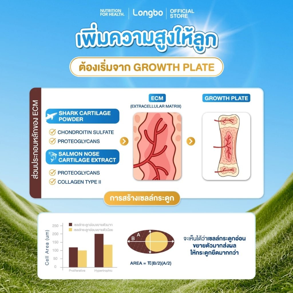 ✅ กระตุ้นการยืดของกระดูกอ่อนส่วนปลาย