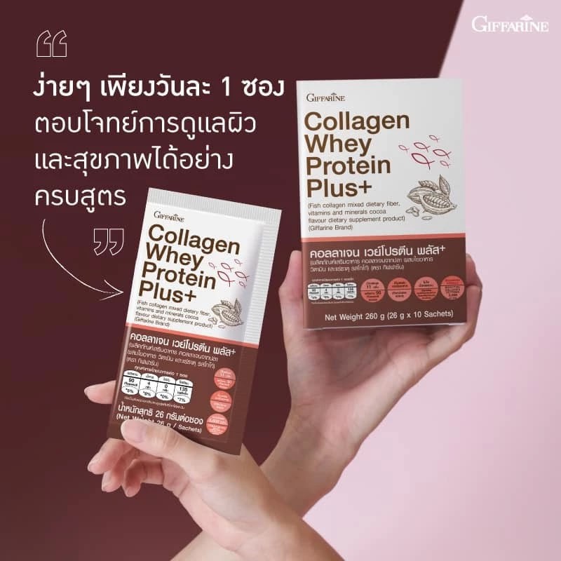 กิฟฟารีน คอลลาเจน เวย์ โปรตีน พลัส+ ผลิตภัณฑ์เสริมอาหาร คอลลาเจนจากปลา ผสม ใยอาหาร วิตามิน และแร่ธาตุ รสโกโก้